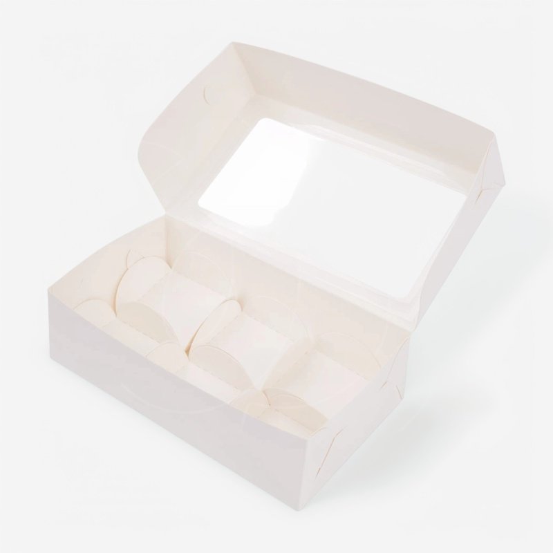 Доставка Коробка для 6 моти с пластиковым окном белая 19х11х5,5 см из магазина в вашем городе: