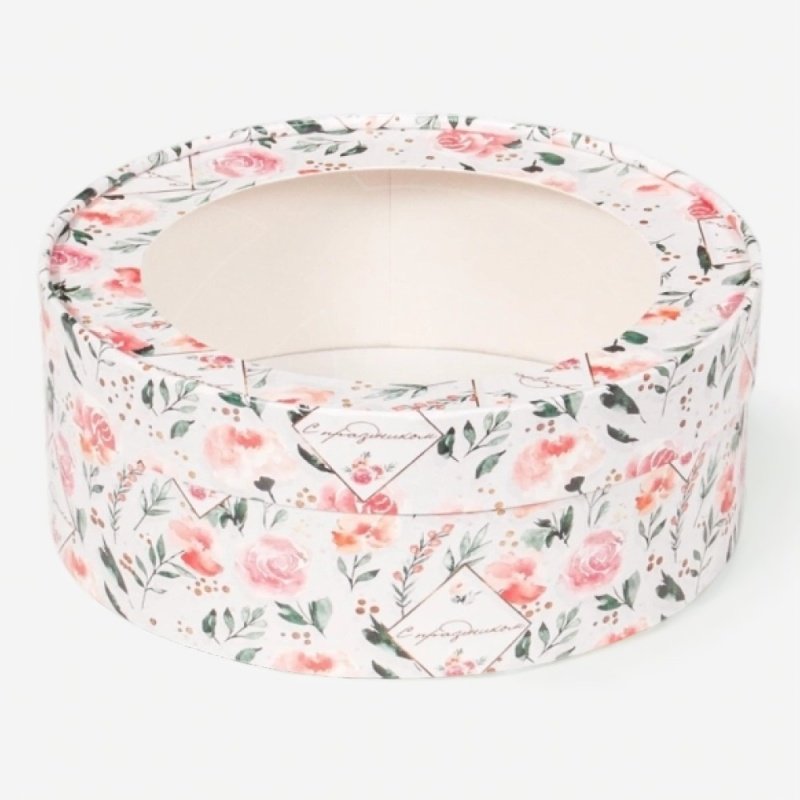 Доставка Коробка для сладостей с окном круглая "Розы" 20х7 см из магазина в вашем городе: