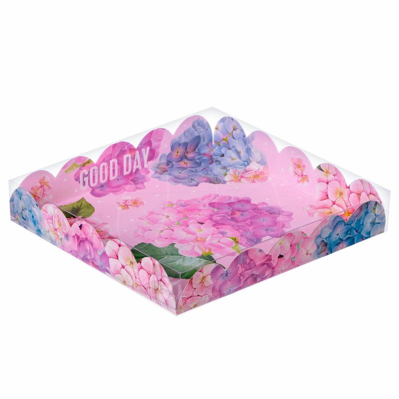 Коробка для сладостей с прозрачной крышкой "Сирень" 18х18х3 см