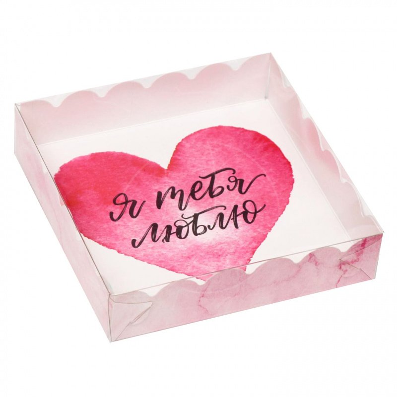 Доставка Коробка для сладостей с прозрачной крышкой "Я тебя люблю" 12х12х3 см из магазина в вашем городе: