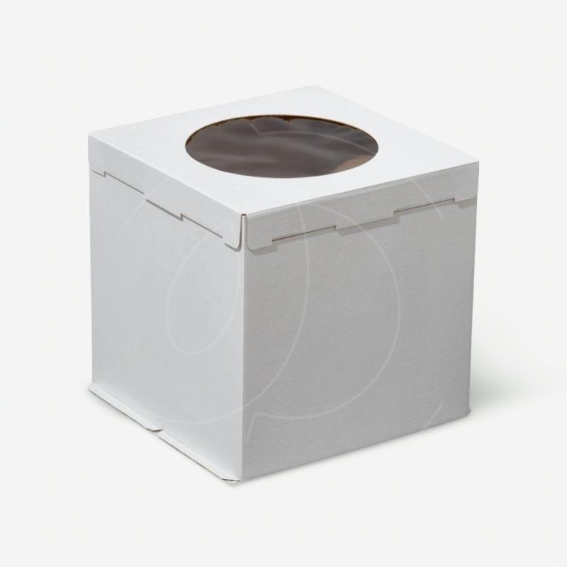 Доставка Коробка для торта с круглым окном белая 28х28х28 см из магазина в вашем городе: