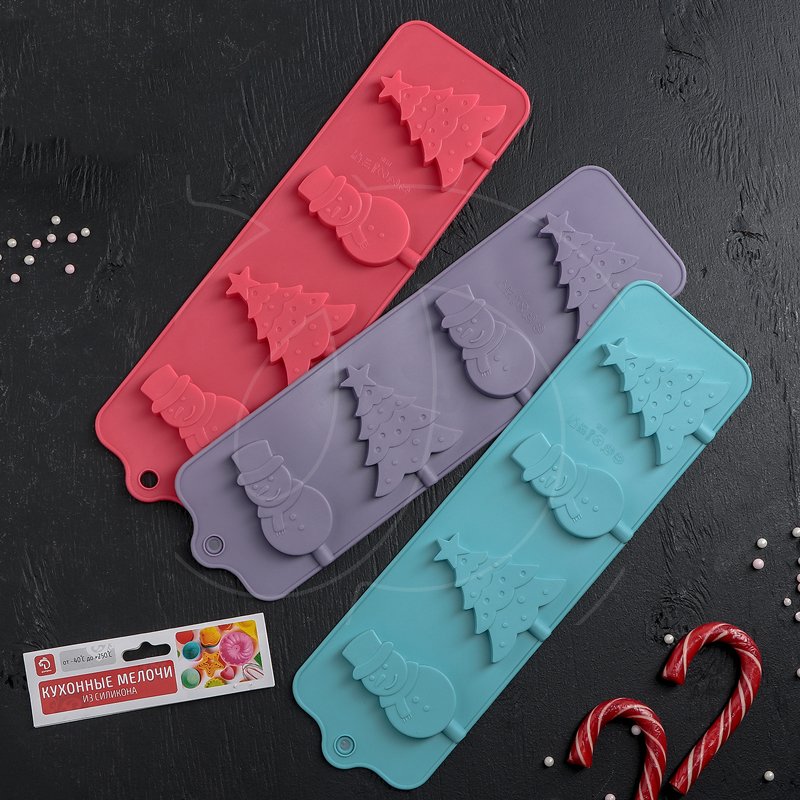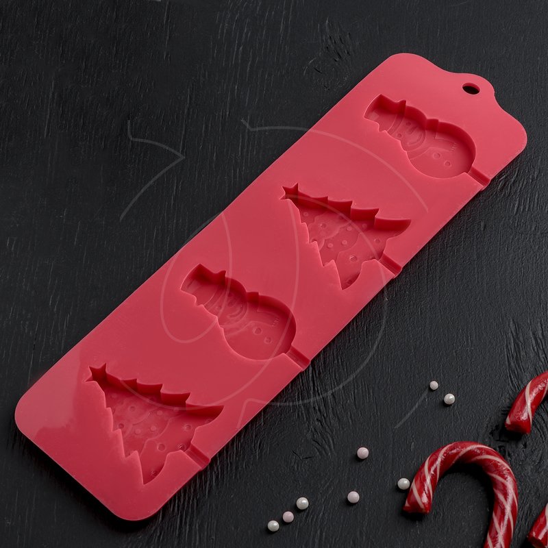 Доставка Форма силиконовая для леденцов "Ёлочки и снеговики" 4 шт из магазина в вашем городе: