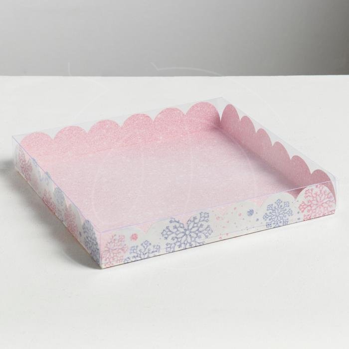 Доставка Коробка для сладостей с прозрачной крышкой "Милые снежинки" 21х21х3 см из магазина в вашем городе: