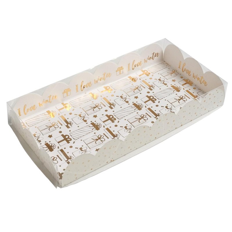 Коробка для сладостей с прозрачной крышкой "Подарки" 10,5х21х3 см
