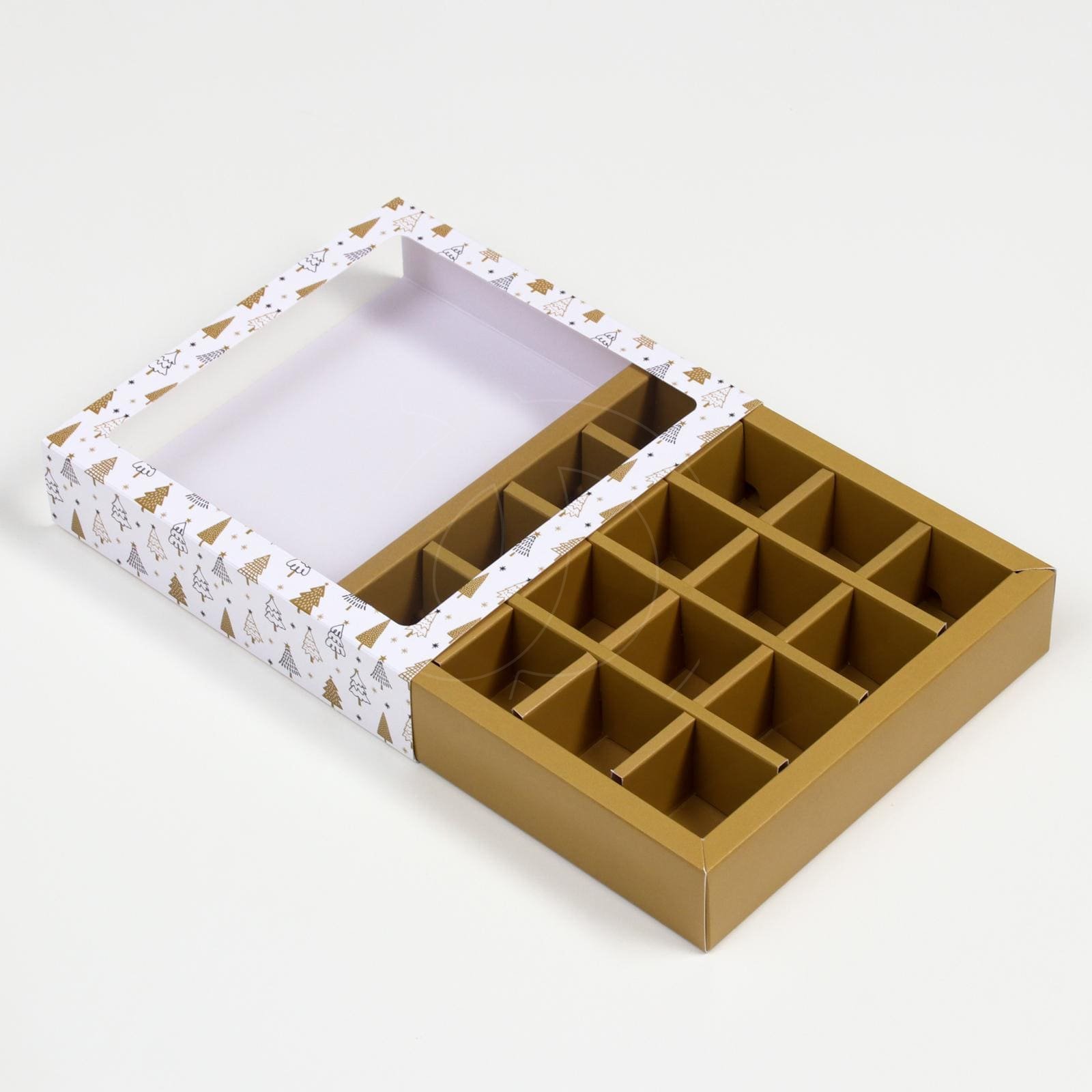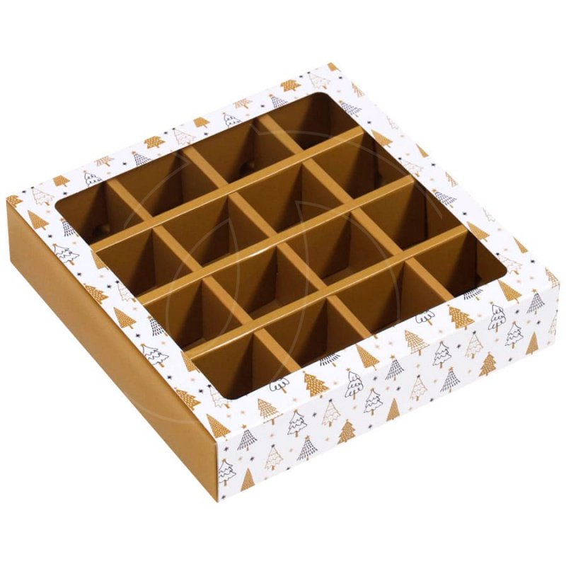 Коробка на 16 конфет с окном "Ёлочки" 17,7х17,7х3,8 см