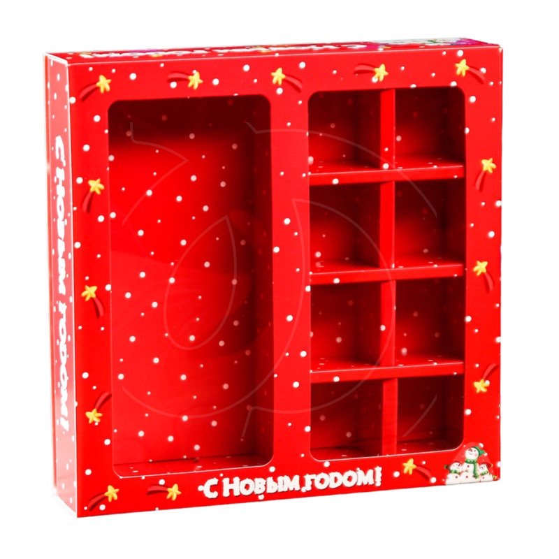 Доставка Коробка на 8 конфет и шоколадную плитку с окном "Яркий Новый Год" 17,7х17,85х3,85 см из магазина в вашем городе:
