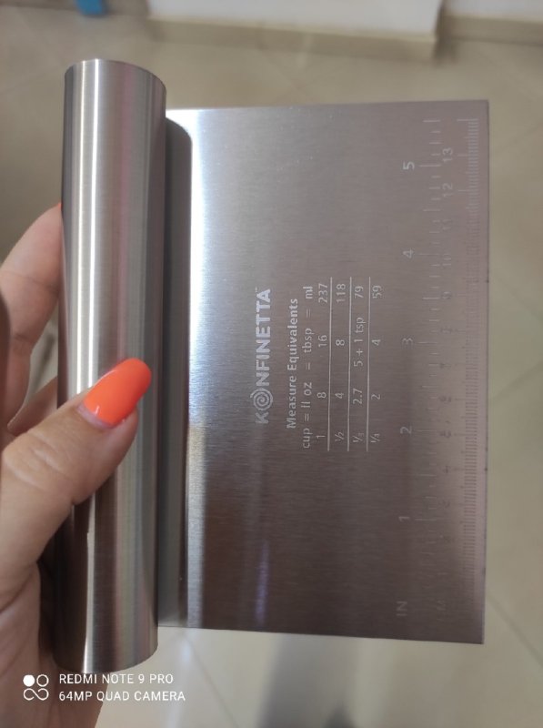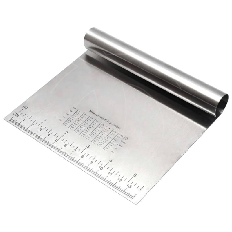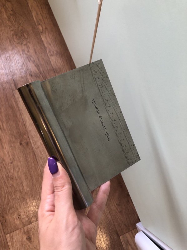 очень хороший металлический скребок. Имеется линейная разметка. Можно мыть в посудомоечной машине, качество металла хорошее, нержавейка. Уронила свой на кухне и уголок согнулся. Теперь работать сложно. А так в целом очень крутой скребок, выравнивает хорошо, царапин не оставляет , главное не ронять.