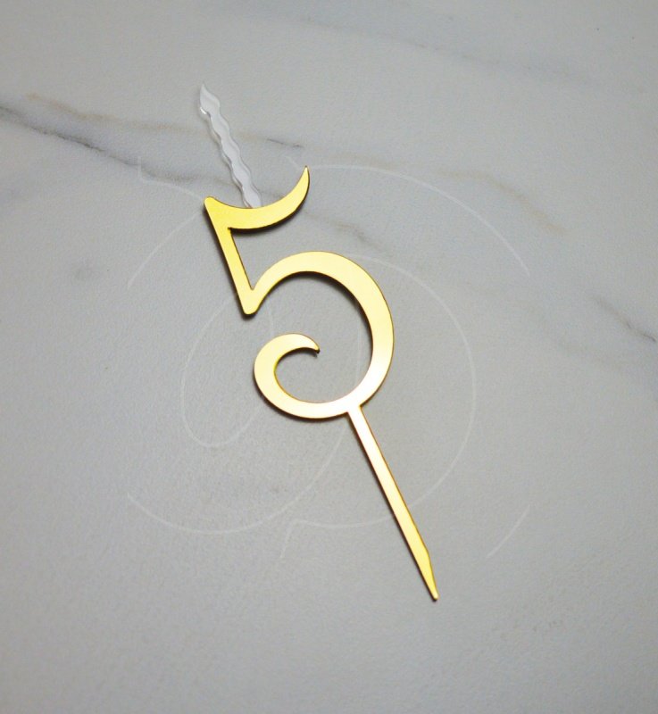 Доставка Свеча-топпер декоративная акриловая Цифра "5" Золото из магазина в вашем городе: