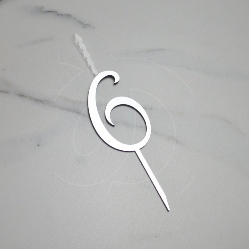 Свеча-топпер декоративная акриловая Цифра "6" Серебро