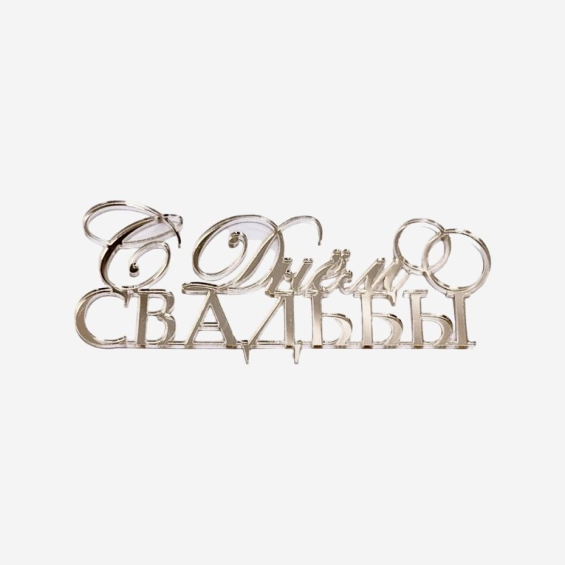 Доставка Топпер декоративный акриловый "С Днём свадьбы" Золото 12 см из магазина в вашем городе: