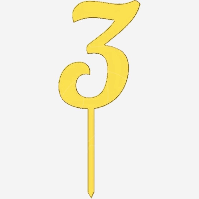 Доставка Топпер декоративный акриловый "Цифра 3 на палочке" Золото 6,5 см из магазина в вашем городе: