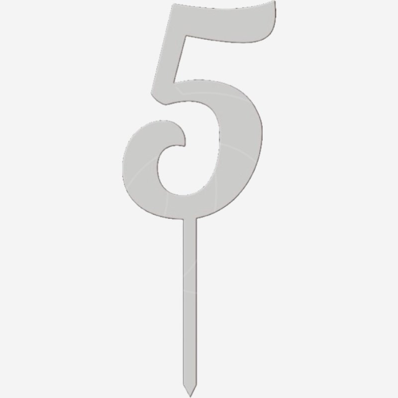 Доставка Топпер декоративный акриловый "Цифра 5 на палочке" Серебро 6,5 см из магазина в вашем городе: