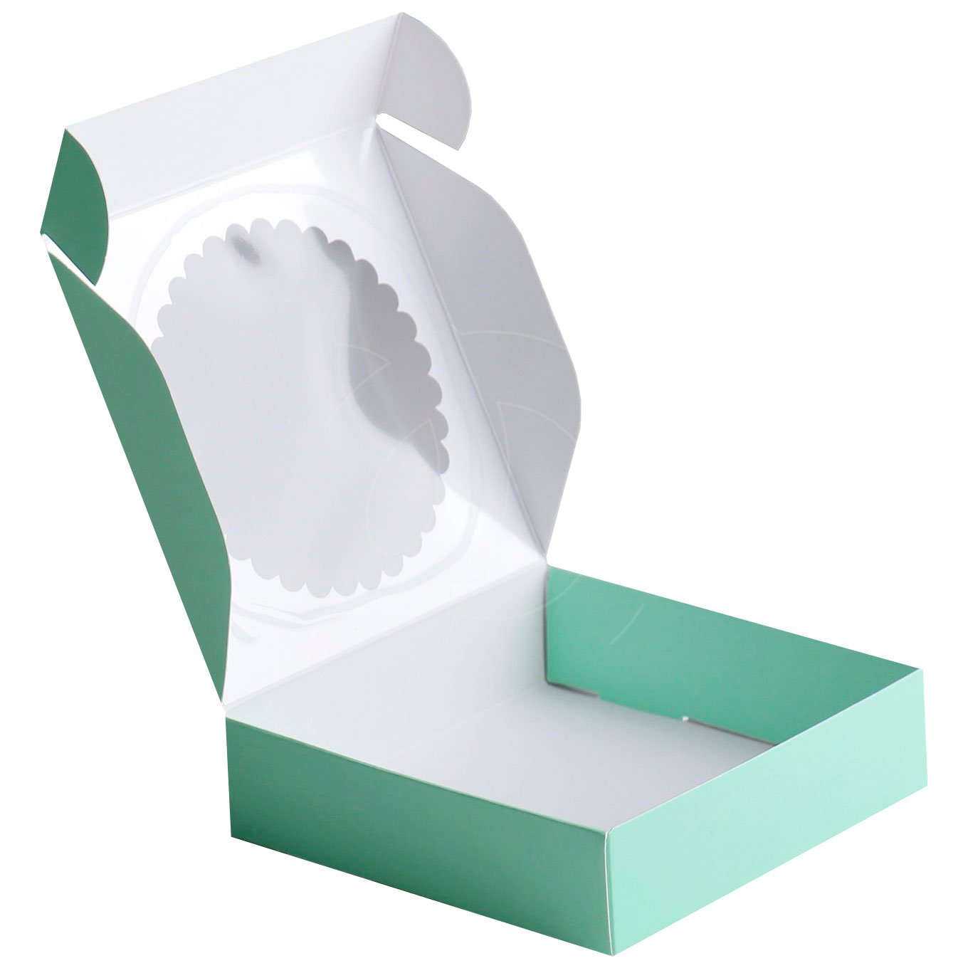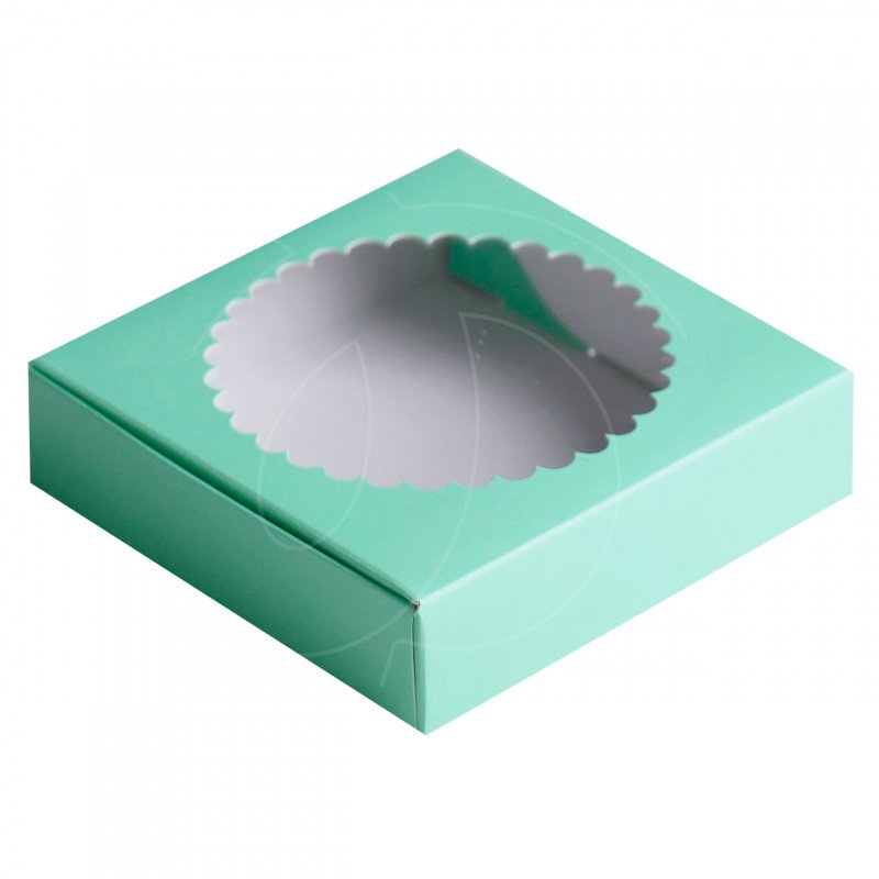 Доставка Коробка для печенья/конфет с окном зелёная 11,5х11,5х3 см из магазина в вашем городе: