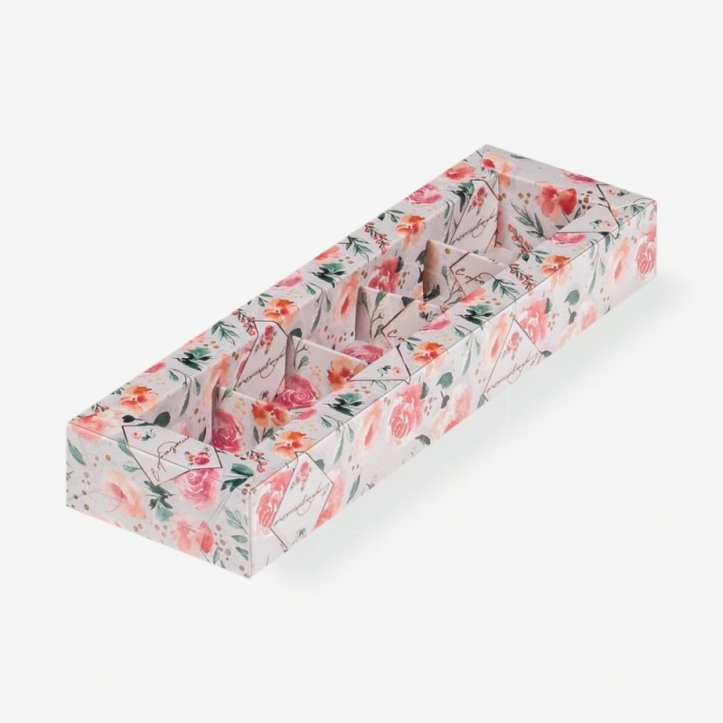 Коробка на 5 конфет с пластиковой крышкой "Розы" 23,5х7х3 см