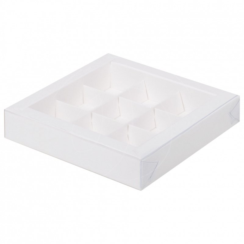Доставка Коробка на 9 конфет с прозрачной крышкой белая 15,5х15,5х3 см из магазина в вашем городе:
