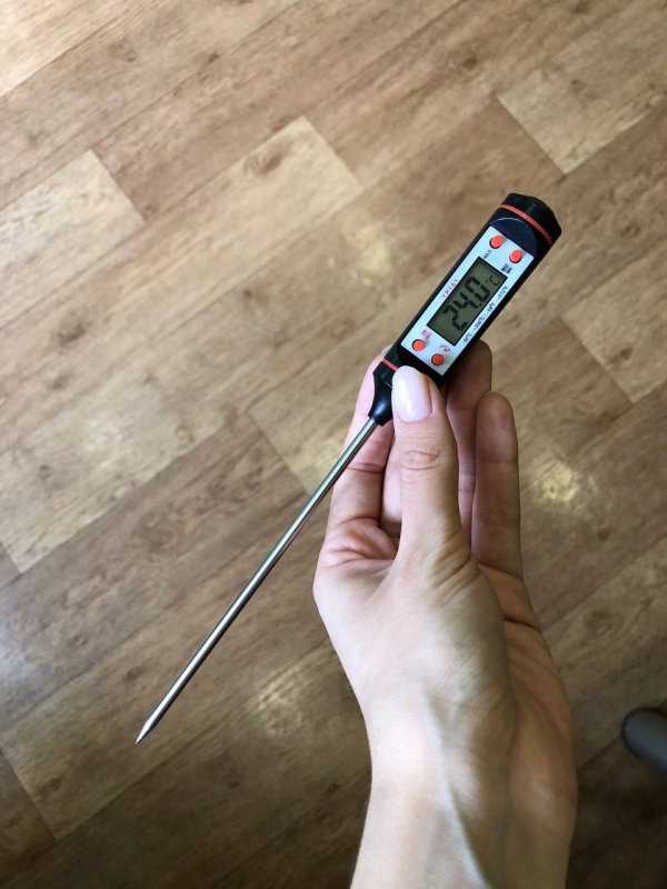 Это без сомнений самый бюджетный вариант термометра. Поэтому и ожидать от него высокой точности измерений не следует. Он отлично справляется с температурами в пределах +100 градусов. Но потом начинает "шалить". Поэтому настоятельно рекомендую его не использовать при варке сиропа для итальянской меренги. Им отлично измерять температуру карамели, всевозможных пюрешек и остывающих масс (кремов, шоколада, глазури), где необходимо измерение не высоких температур и не требуется точность до 1 градуса.