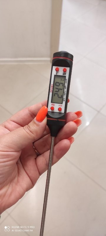 Нужный инструмент для начинающего (и не только) кондитера. Однако он не всегда показывает точную температуру, частенько врёт, градуса на 2 точно. У меня таких два и оба показывают с погрешностями. Поэтому рекомендую для начала приноровиться к термометру, опустить его в кипящую воду и посмотреть, какую температуру он покажет. Мой термометр показывает 97-98, т.е. врёт на 2-3 градуса. Поэтому всегда держу это в уме и при использовании прибавляю эти градусы в уме. Ещё этот термометр не очень быстро набирает температуру, приходится немного подождать, постоять и подержать его. Но за такую цену вполне нормальный термометр. Использую его для варки сиропа на итальянскую меренгу, карамели, сиропа для зефира. Для шоколада он не подходит, как мне кажется, темперировать с ним – одно сплошное мучение.