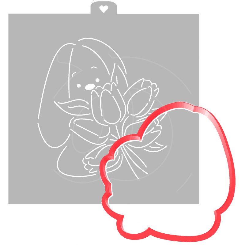 Доставка Вырубка пластиковая и трафарет LUBIMOVA "Зайка с букетом тюльпанов" из магазина в вашем городе: