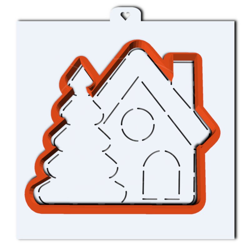 Доставка Вырубка пластиковая и трафарет Домик с ёлкой из магазина в вашем городе: